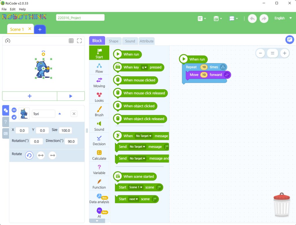 - You will see the green "RoCode" icon on your Windows Desktop as shown below the Download Button below - Should you wish to run the application, you will be presented with the RoCode coding environment, a picture is shown below.